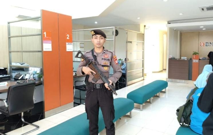 Layanan ini terus disampaikan secara intens oleh masyarakat terutama para warga yang berada di kantor Perbankan. Ini yang dilakukan oleh Anggota Sat Samapta Polres Ciamis Polda Jabar yakni Bripda Hexsa yang bertugas pengamanan di Bank BNI, Kecamatan Ciamis, Kabupaten Ciamis, Jawa Barat, Jumat (27/12/2024).
