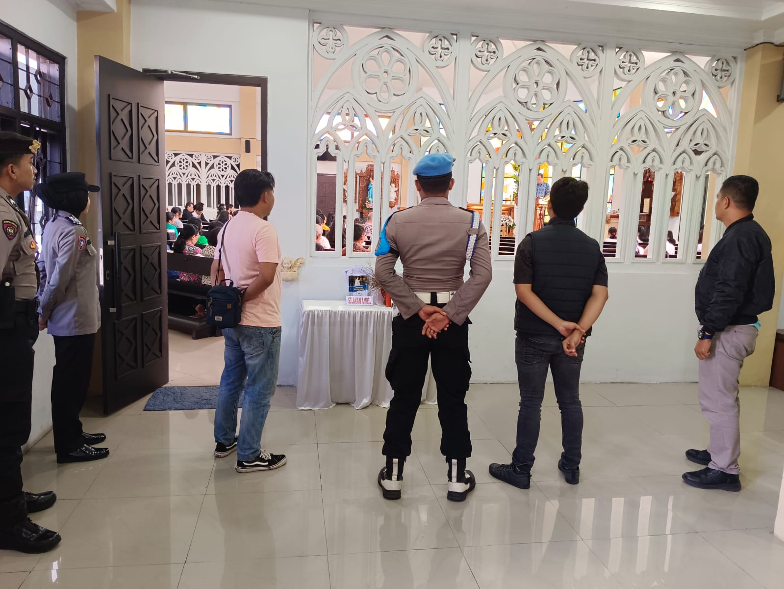 “Pengamanan yang kami lakukan, baik pengecekan didalam gereja, disekitar dan barang bawaan jemaah untuk menjaga dari hal yang dapat mengganggu jalannya Ibadah umat Kristiani. Anggota juga melaksanakan pengaturan lalu lintas agar tidak terjadi kecelakaan dan kemacetan jalur. Ini semua kami lakukan sesuai dengan tupoksi Polri sebagai pelindung, pengayom dan pelayan masyarakat,” kata Kompol Alan Dahlan.