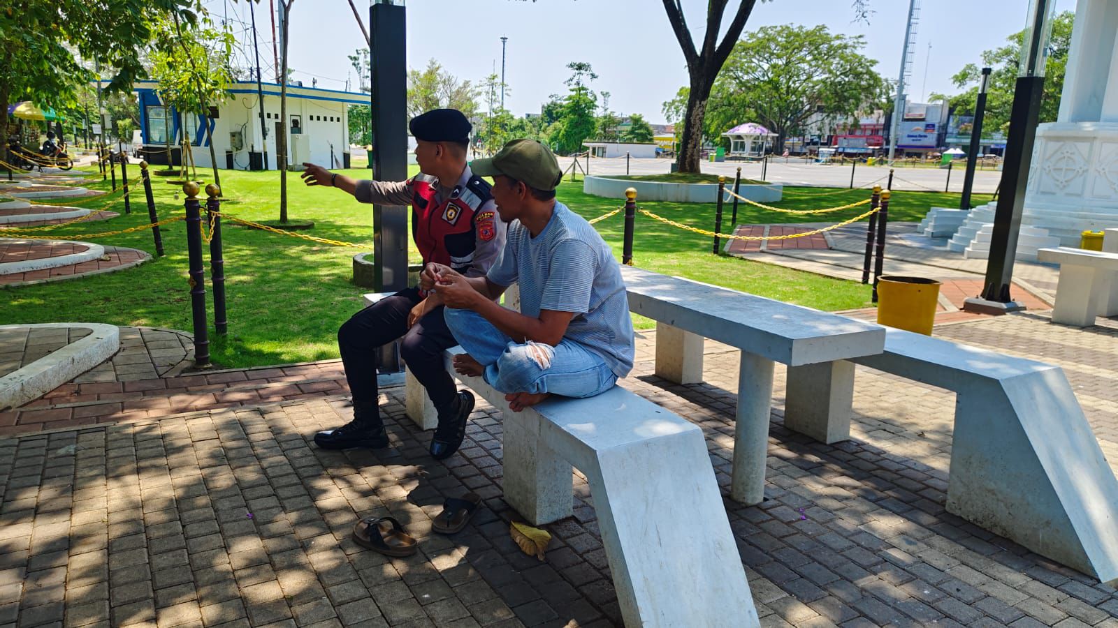Dua Personel Samapta Polres Ciamis Patroli Jalan Kaki di Alun Alun Ciamis Beri Imbauan Kamtibmas