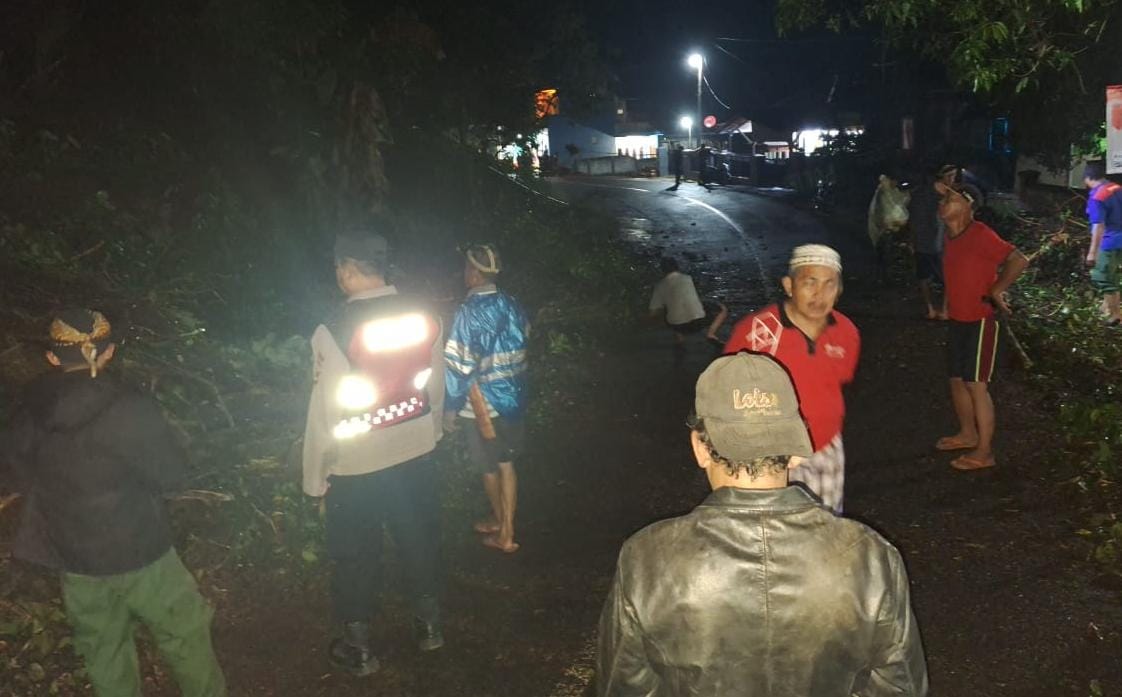 Akibat dari kejadian tersebut akses jalan tertutup dan mengakibatkan kemacetan, Anggota Polsek Sukadana bersama warga turun tangan membersihkan puing pohon yang menutup akses jalan.