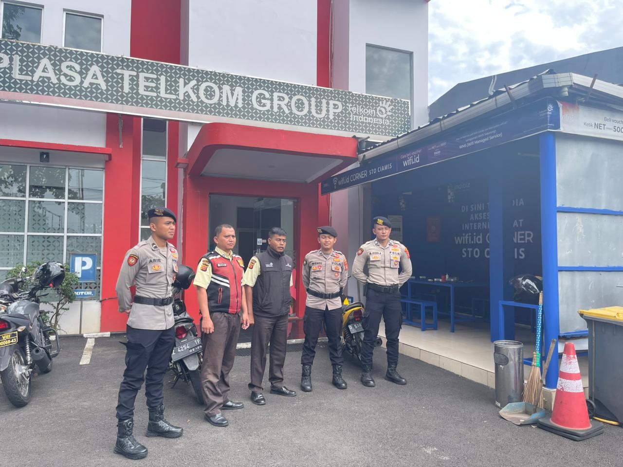 CIAMIS ~ Pasukan Patroli Dialogis Roda 2 Satuan Samapta Polres Ciamis Polda Jabar mendatangi kantor pelayanan publik dan objek vital dalam rangka cipta kondisi antisipasi gangguan kamtibmas pasca pencoblosan Pilkada Serentak 2024. Patroli kali ini dengan menyambangi Plasa Telkom Ciamis, Jalan Jenderal Sudirman Ciamis, Kabupaten Ciamis, Jawa Barat, Sabtu (30/11/2024).