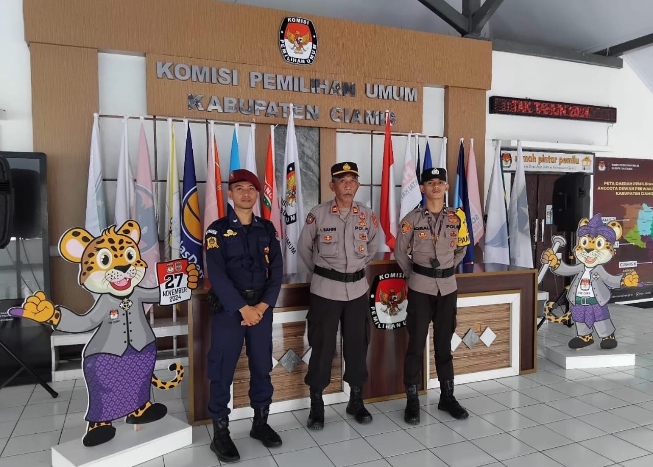 Sebanyak 4 personel disiagakan untuk mempertebal pengamanan guna menghadapi Pilkada Serentak 2024 di Kabupaten Ciamis. Mereka bersiaga Kantor KPU Kabupaten Ciamis. Personel yang bertugas dan bersiaga diantaranya Bripka Roby Firmansyah, Bripka Wilda Nugraha, Bripda Iqbal Rizki Taufiq dan Bripda Ahmad Nailulmarom.