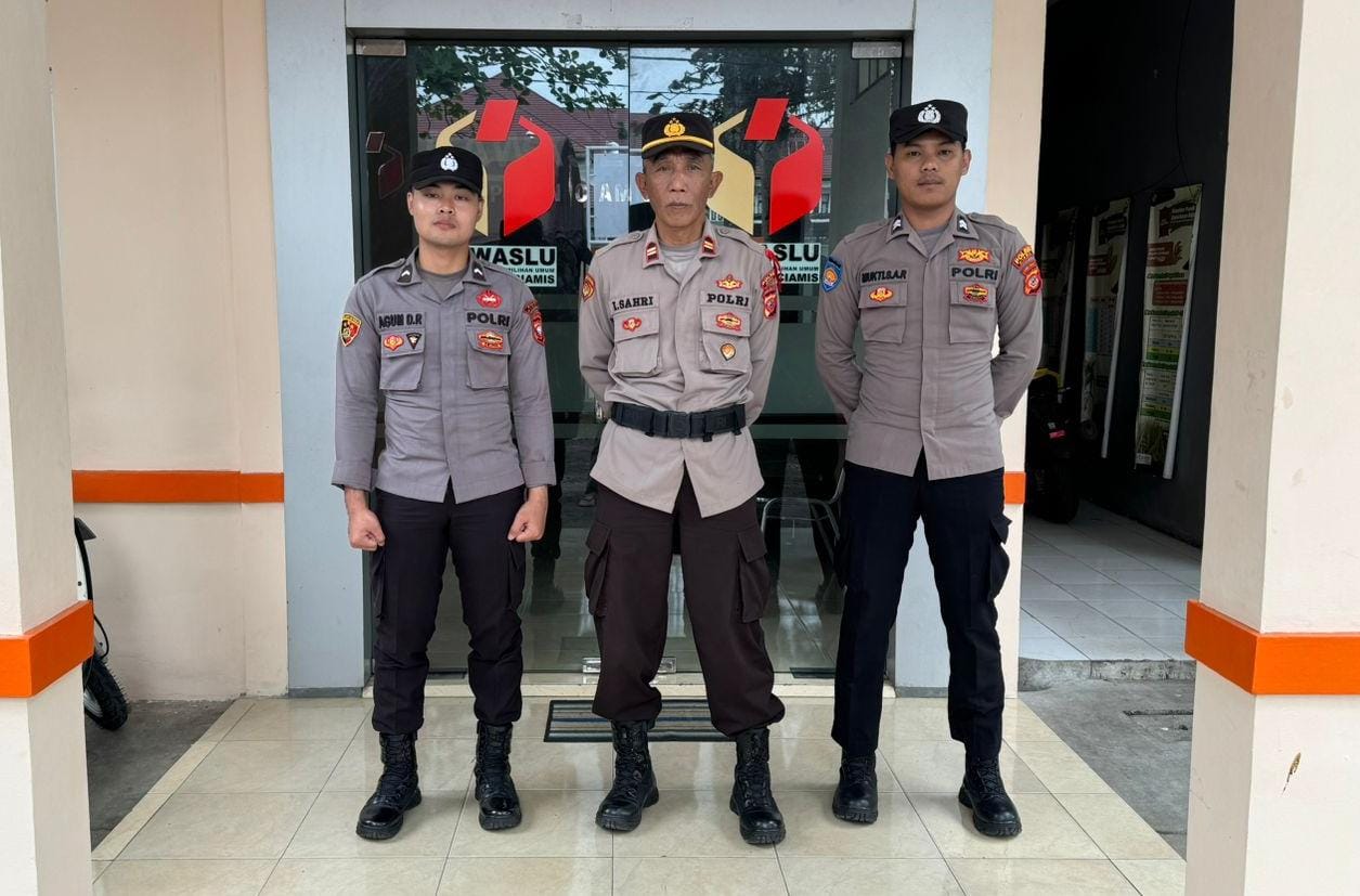Sebanyak 3 personel disiagakan untuk mempertebal pengamanan guna menghadapi Pilkada Serentak 2024 di Kabupaten Ciamis. Mereka bersiaga Kantor Bawaslu Kabupaten Ciamis. Personel yang bertugas bersiaga di Kantor Bawaslu Kabupaten Ciamis diantaranya Briptu Yudi Santoso, Briptu Bayu Frediansyah dan Bripda Agum Dira.