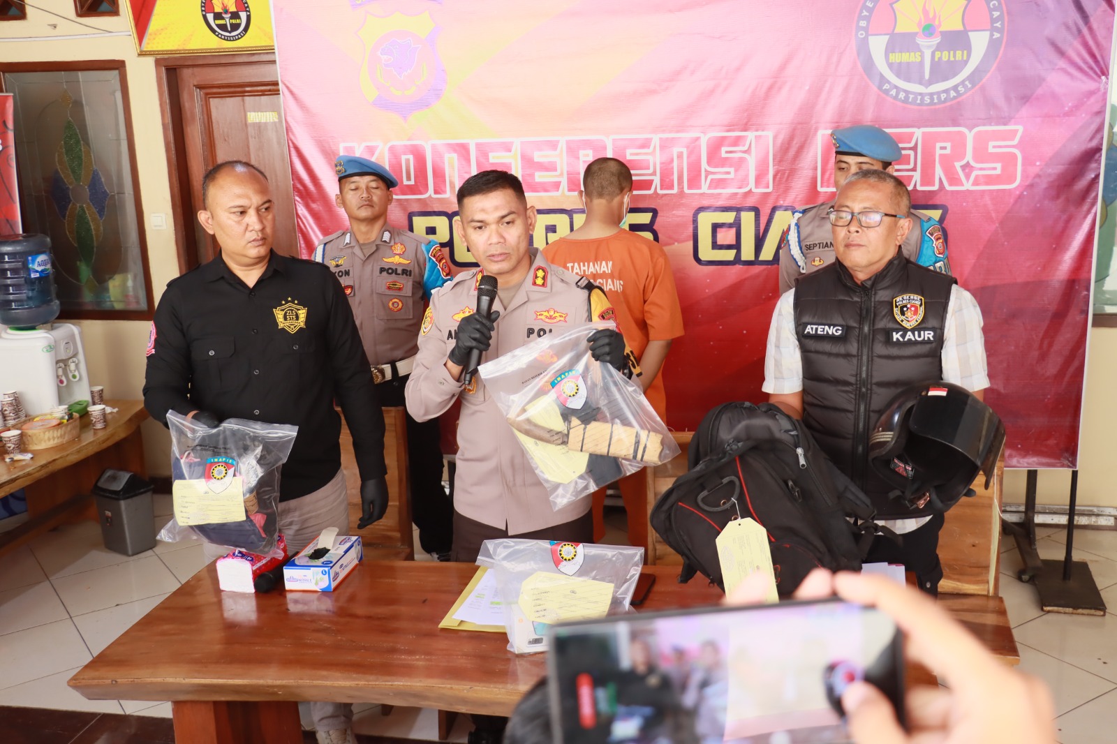 “Pelaku berhasil diamankan dari amukan warga yang berhasil menangkap pelaku setelah melancarkan aksi kejahatannya. Pelaku telah diamankan beserta barang bukti yang digunakan saat melakukan kejahatan,” ujar Kapolres Ciamis Polda Jabar AKBP Akmal SH., S.I.K., M.H., didampingi Kaur Bin Ops Sat Reskrim Polres Ciamis Iptu Ateng Budiono, Ps. Kasi Humas Polres Ciamis Aipda Septian dalam konferensi pers di Mako Polres Ciamis, Selasa (17/9/2024).