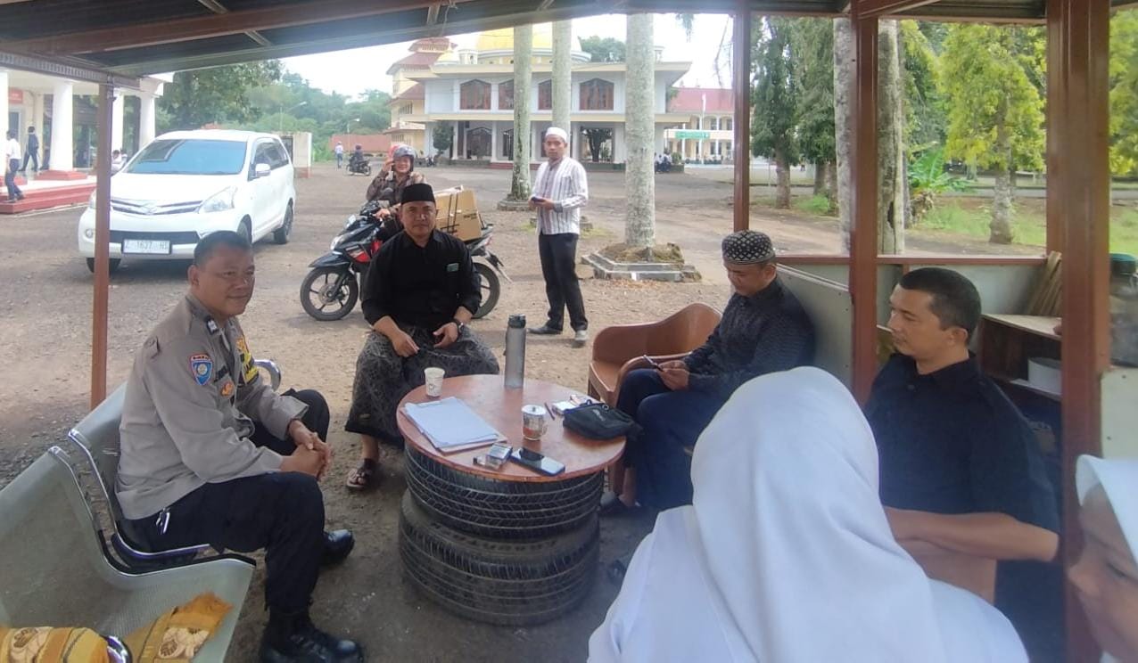 CIAMIS ~ Antisipasi gangguan kamtibmas, jajaran Polres Ciamis Polda Jabar secara intens melakukan koordinasi dan komunikasi dengan masyarakat serta tokoh. Tak terkecuali seperti yang dilakukan oleh jajaran personel Polsek Cijeungjing Polres Ciamis Polda Jabar dengan tokoh agama Pondok Pesantren Arrisalah, Kecamatan Cijeungjing, Kabupaten Ciamis, Jawa Barat, Senin (30/9/2024).