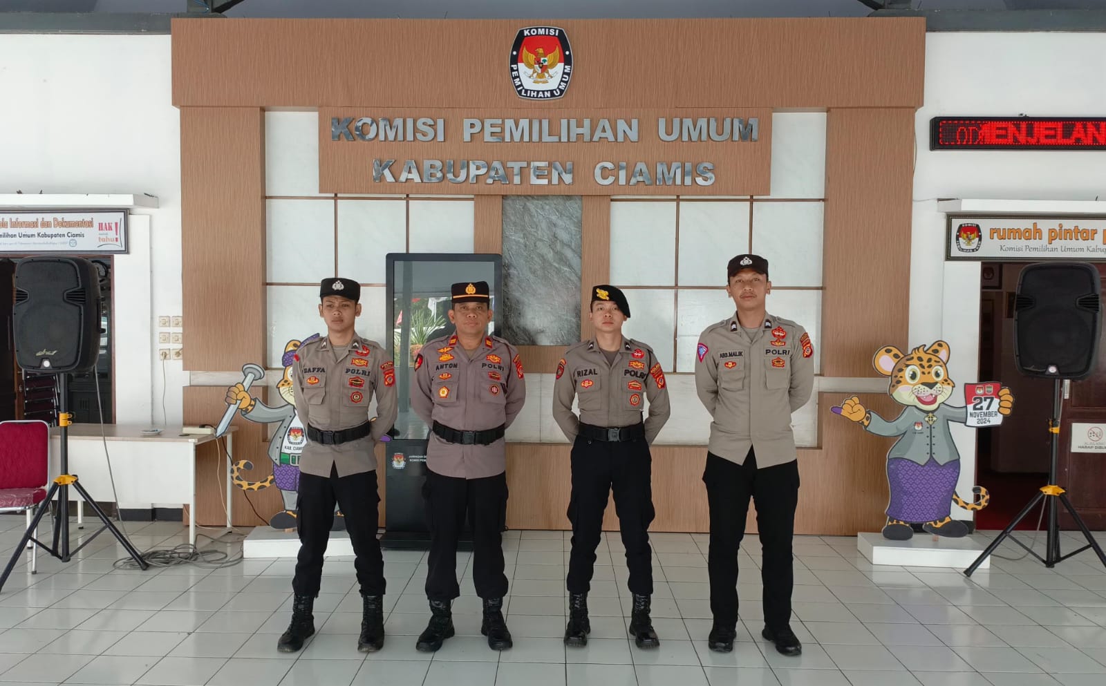 Sebanyak 4 personel disiagakan untuk mempertebal pengamanan guna menghadapi Pilkada Serentak 2024 di Kabupaten Ciamis. Mereka bersiaga Kantor KPU Kabupaten Ciamis. Personel yang bertugas dan bersiaga diantaranya Briptu Septiadi Abdul Malik, Briptu Restu Nurhidayatuloh, Bripda Daffa dan Bripda Rizal.
