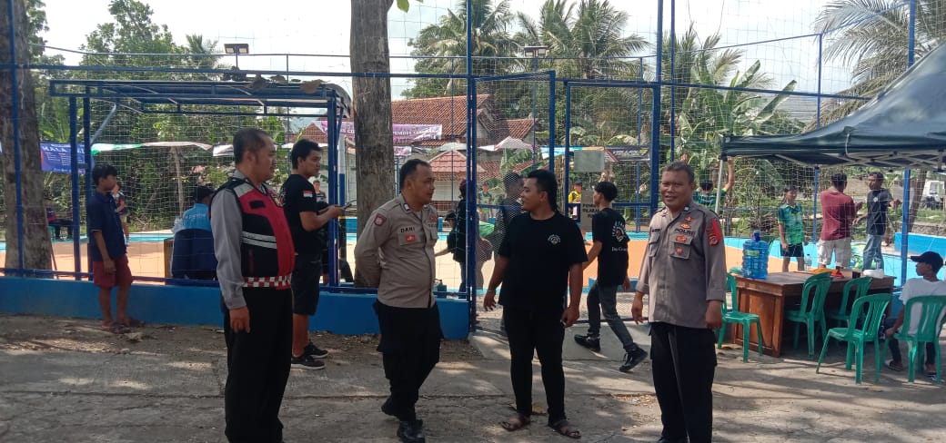Tampak terlihat sejumlah personel Polri melakukan pengamanan di sekitar lokasi tatap muka paslon bersama warga. Kegiatan ini berlangsung di Lapang Volly Muda Bisa Dusun Ciherang Desa Ciherang, Kecamatan Banjarsari, Kabupaten Ciamis, Jawa Barat, Sabtu (5/10/2024).
