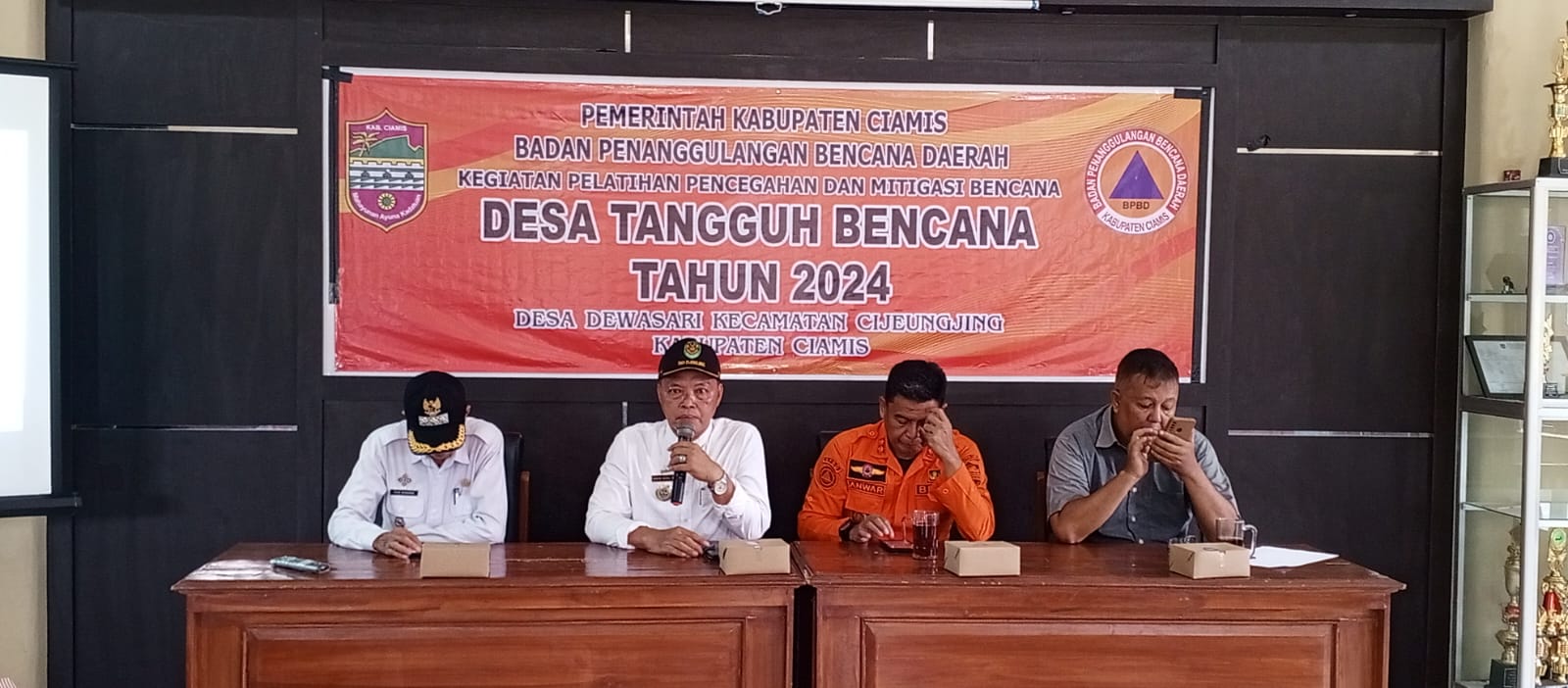 Polsek Cijeungjing Polres Ciamis Hadiri Sosialisasi Mitigasi Bencana di Desa Dewasari