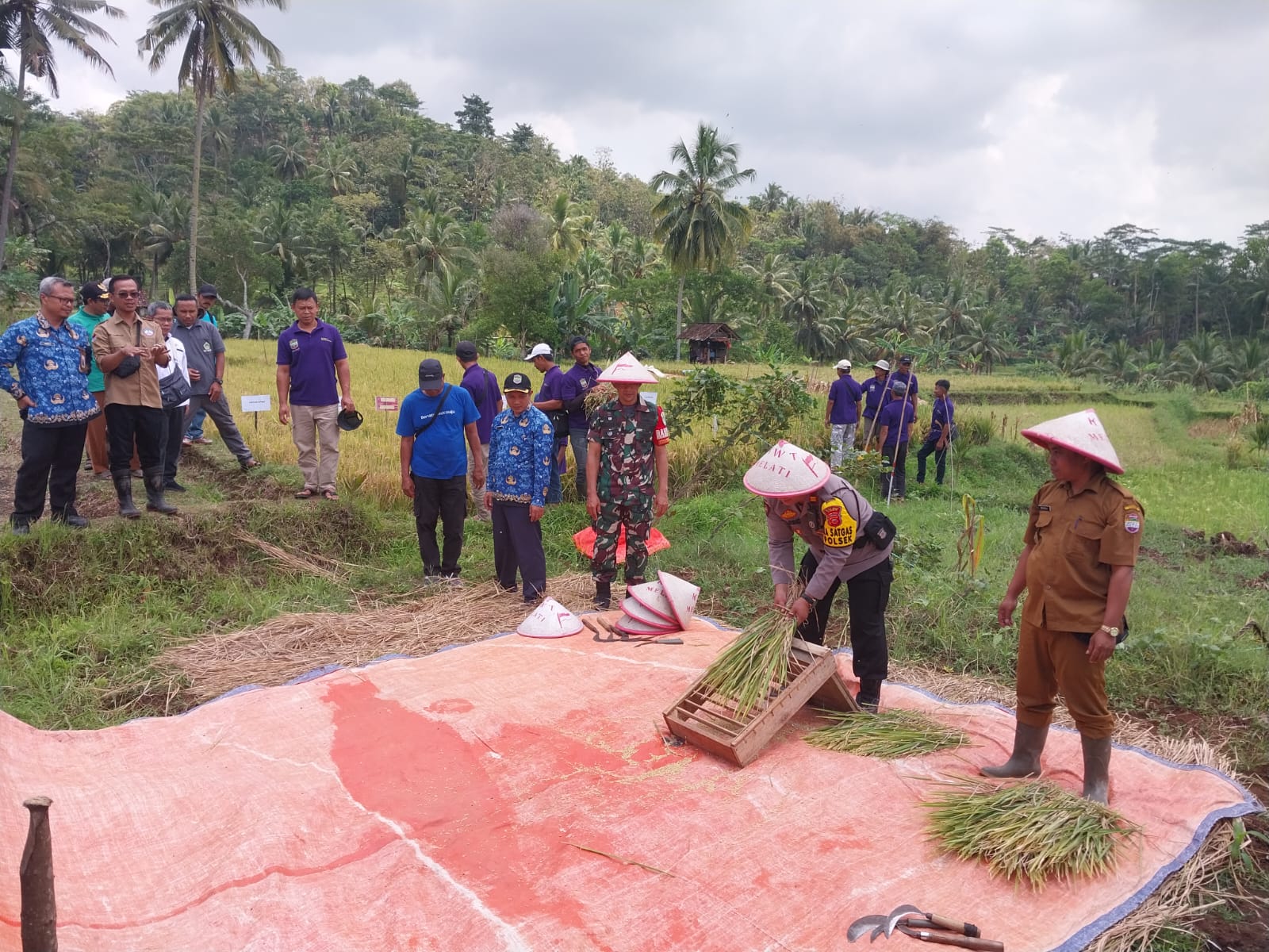 CIAMIS ~ Personel Polsek Cimaragas Polres Ciamis Polda Jabar melaksanakan monitoring penutupan Sekolah Lapang Pertanian Ramah Lingkungan. Kegiatan dilaksanakan di Lahan Pertanian Sawah Kelompok Tani Sukahurif II Dusun Jelegong, Desa Jelegong, Kecamatan Cidolog, Kabupaten Ciamis, Jawa Barat, Selasa (1/10/2024).