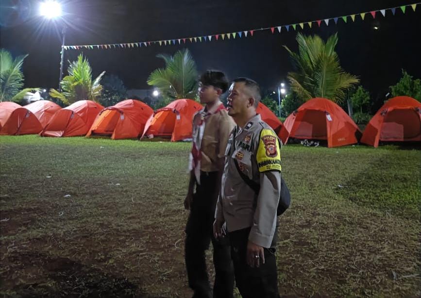 Polsek Cipaku Polres Ciamis Monitoring Pelantikan Pramuka Penggalang Gugus SMPN 5 Ciamis