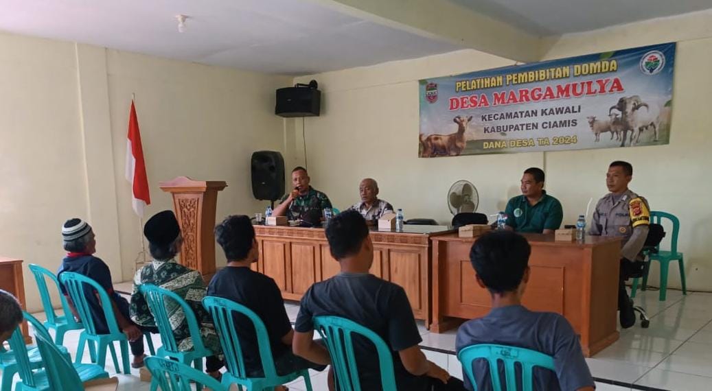 CIAMIS ~ Personel Polsek Kawali Polres Ciamis Polda Jabar melaksanakan monitoring pelatihan Peembibitan Domba di masyarakat Desa Margamulya. Penyuluhan tersebut dilaksanakan di Gor Desa Margamulya, Kecamatan Kawali, Kabupaten Ciamis, Jawa Barat, Jumat (13/12/2024).