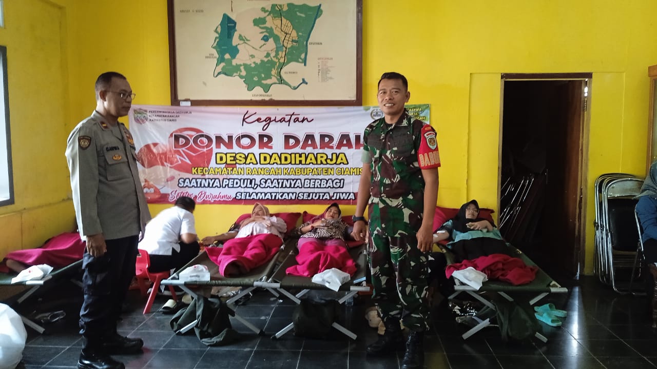 Kegiatan ini dilaksanakan oleh Kanit Binmas Polsek Rancah Polres Ciamis Polda Jabar Ipda Carwa. Anggota hadir melakukan monitoring sekaligus donor darah di acara yang diselenggarakan Pemerintah Desa Dadiharja bersama PMI Kabupaten Ciamis