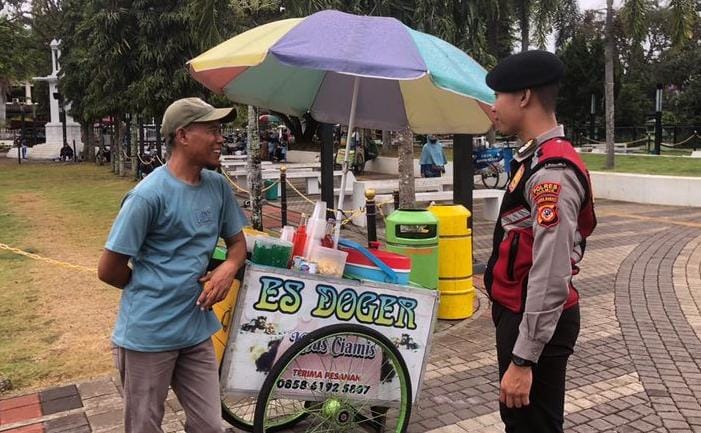 Pengamanan ini melibatkan tiga personel Satuan Samapta Polres Ciamis Polda Jabar. Ketiga personel itu, diantaranya Bripda Ivan, Bripda Ilham dan Bripda Fachrul. Mereka berjalan kaki mendatangi setiap warga yang beraktifitas di kawasan Alun Alun Ciamis untuk memberikan pesan-pesan kamtibmas.