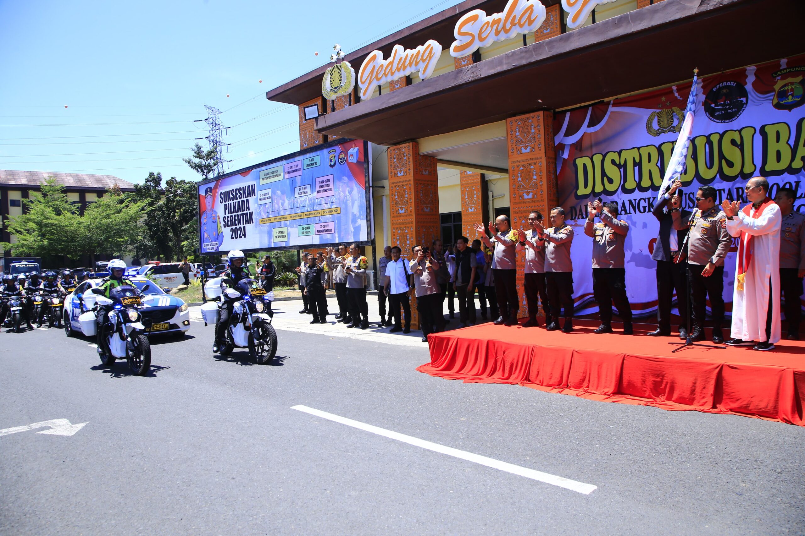 Operasi Nusantara Cooling System (NCS) Polri menggelar silaturahmi kebangsaan dan bakti sosial berupa pembagian 5.000 paket sembako untuk masyarakat di Provinsi Lampung, Jumat (20/9/2024).