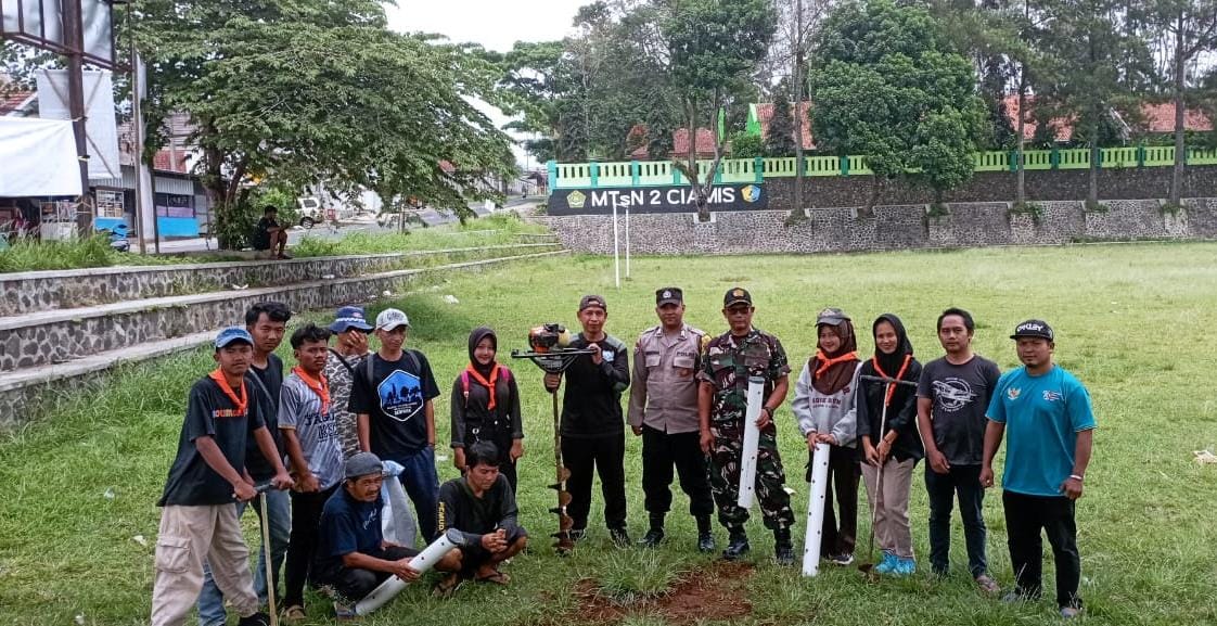 CIAMIS – Lapangan Sepak Bola Desa Awiluar, Kecamatan Lumbung, Kabupaten Ciamis, berlangsung kegiatan *Pembuatan Lubang Sumur Resapan Air (Lubang Biopori)* yang melibatkan TNI-Polri bersama masyarakat setempat. Kegiatan ini diinisiasi oleh Komunitas Pelindung dan Pecinta Alam Sedapala SMA N 1 Lumbung, sebagai bagian dari upaya pelestarian lingkungan dan pencegahan banjir. Sabtu (05/10/2024)