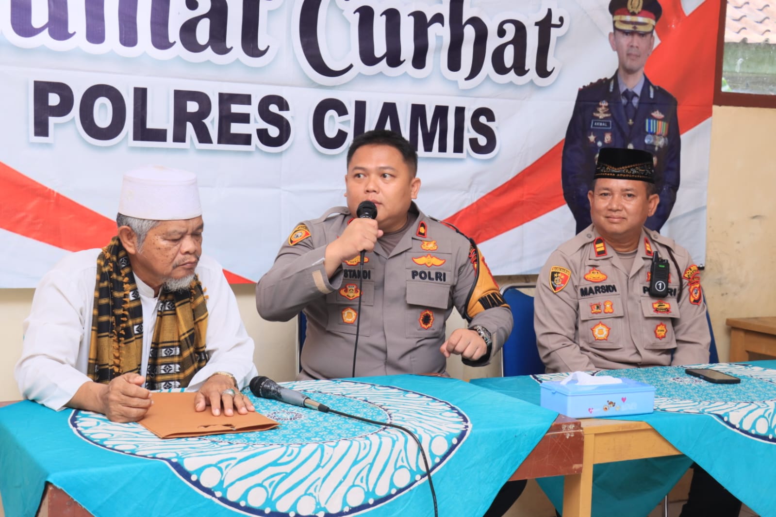 Kegiatan yang berlangsung mulai pukul 10.00 WIB ini menjadi ajang diskusi terbuka antara pihak kepolisian dan masyarakat. Turut hadir dalam acara ini jajaran Pejabat Utama (PJU) Polres Ciamis, Kapolsek Cimaragas, Ketua Majelis Ulama Indonesia (MUI) Kecamatan Cimaragas, serta masyarakat setempat yang antusias mengikuti diskusi tersebut.